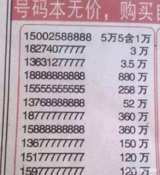 通讯作为当下社会生活中不可缺一的东西,它早已与日常生活融为一体。不过大家应该都有同样一种做法,就是在选择通讯号上面,都会比较挑剔。不仅要选择好记顺口的,还要选择数字漂亮的。像6、8、9这些数字一般是大家的首选,寓意也比较好。而在以前那个连买手机都是一项奢侈的行为,人们选择通讯号的机会就更广阔。当初那个拍出了1.2亿元天价的手机号,10个8被哄抢,结果呢?