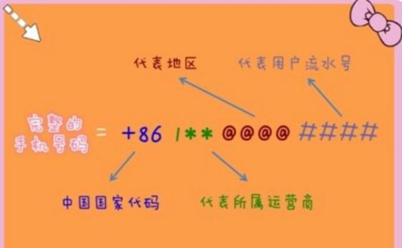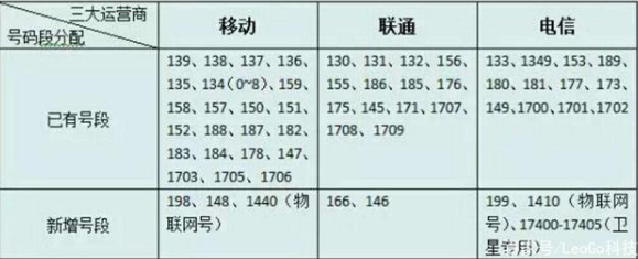 比如,86就是指的是国家代码,这是我国的代码;而后面的,136,139,181等等代表的是属于哪个运营商,移动/电信/联通,比如我们的可以看到下面的图,就是各大运营商的号段。