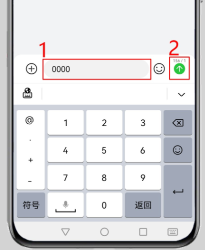4、然后点击“短信/彩信”文本框并输入“0000”,并点击文本框右侧的发送按钮。