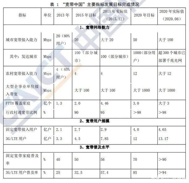 2020年,我国超额完成了“宽带中国”战略所指定的目标,如个别固定宽带家庭普及率原定目标是70%,实际上达到96%,行政村通光纤比例原定目标是达到98%,实际上超过99%。