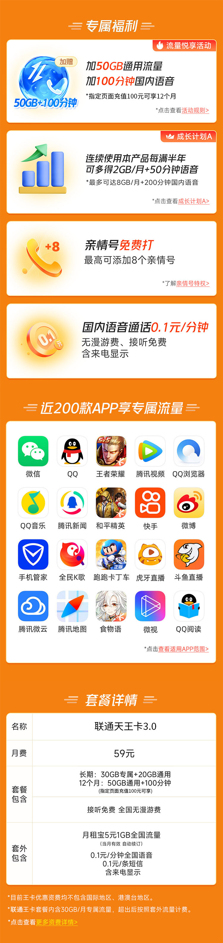 激活指定页面充值100话费,可享59元套餐加赠50GB通用+100分钟(共计100G流量+100分钟通话),有效期12个月,一年后恢复原59套餐(20G通用流量+30G专属流量),省内办理